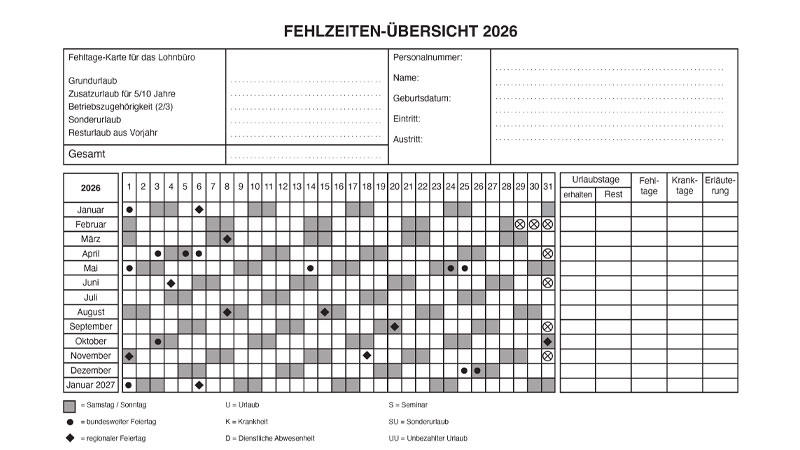 Die Verwaltung von Urlaubs-, Fehl- und Kranktagen jedes einzelnen Mitarbeiters gestattet das zum Download zur Verfügung gestellte Formular.